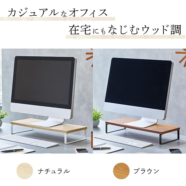 商品名:リヒトラブ パソコン台 モニター台 木目調 MDF机上台スリム ブラウン 幅50×奥行20×高さ8cm ロー 耐荷重15kg A8002-9