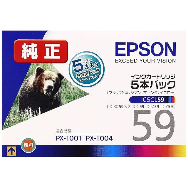 商品名:エプソン 純正 インクカートリッジ クマ IC5CL59 4色パック ブラック2本入り
