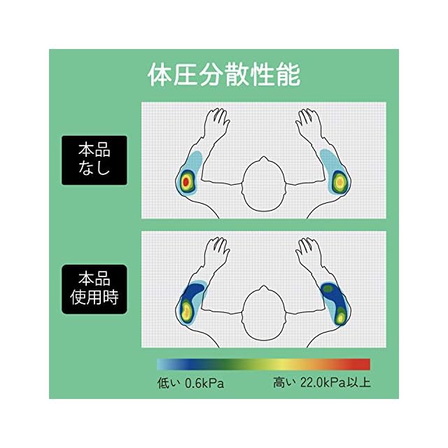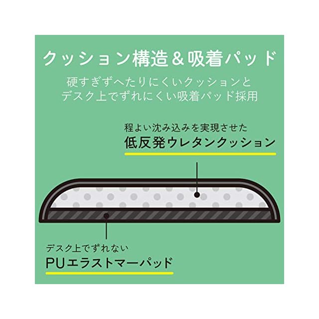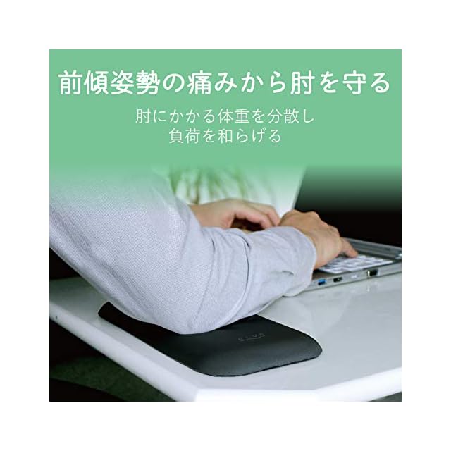 硬すぎずへたりにくいクッション素材を採用し、肘にかかる体重を分散させ負荷を和らげます。