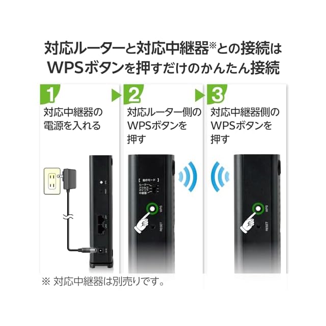アプリ不要で、WPSボタンを押すだけで別売りのEasyMesh対応中継器と繋がり、メッシュネットワークを構築することが可能です。