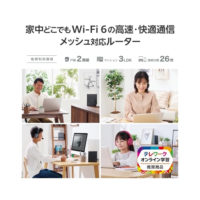 Wi-Fi 6対応でより安定した高速通信を実現しました。複数台同時接続に強いので、テレワークやオンライン学習にも最適です。
