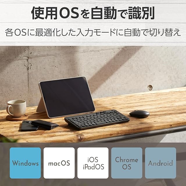 商品名:エレコム ワイヤレス キーボード Bluetooth メンブレン式 コンパクト 2台接続切替 Caps Lock機能無効化スイッチ搭載 OS自動識別 500万回高耐久キー採用 抗菌 Windows/macOS/ChromeOS/iOS/iPadOS/Android 対応 ブラック TK-CM10BMKBK
