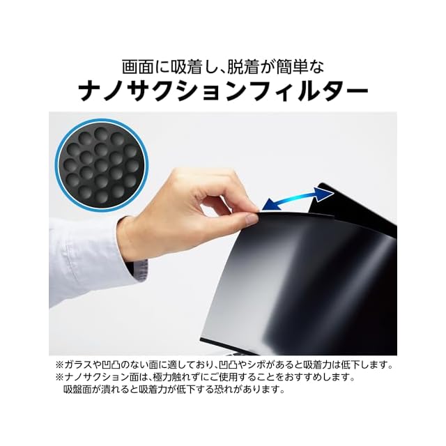 画面に吸着してフィルターを固定でき、取り外しも簡単にできる素材“ナノサクション"を採用しています。
