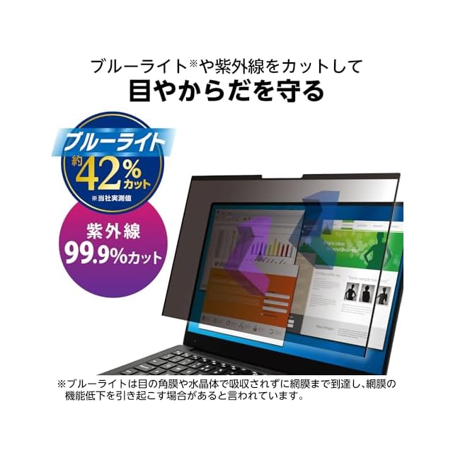 LED液晶ディスプレイが発する光の中の青い部分「ブルーライト」も約42%カットします。