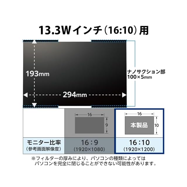 商品名:エレコム 液晶保護フィルター のぞき見防止 ナノサクション 13.3Wインチ(16:10) EF-PFNS133W10