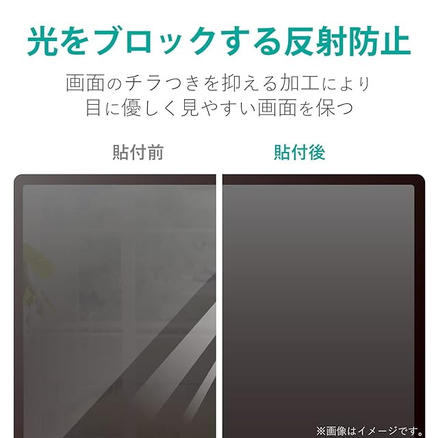 反射率1.6%と優れた低反射率で外光の反射、映り込みを防ぎ、目に優しく見やすい画面を実現した、反射防止液晶保護フィルムです。