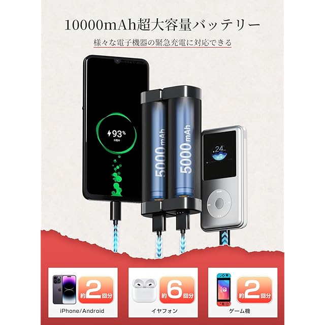 【1台2役・大容量10000mAh】カイロにもモバイルバッテリーにもなる、冬の最強マルチアイテム! 10000mAh(5000mAh×2)の大容量バッテリー搭載、ハンドウォーマーとしてだけでなく、スマホ・タブットなどの充電も可能。1つを温めながら、もう1つで充電。外出がぐっと楽になる!【最大連続14時間の暖かさ】温度モードに応じて、しっかり長時間発熱:低温モード:約7~14時間、中温モード:約5~7時間、高温モード:約4~6時間(※使用時間は2つのカイロの合計で、周囲温度や使用状況により変動することがあります。)この冬は、暖かさと充電の心配を、ひとつに。