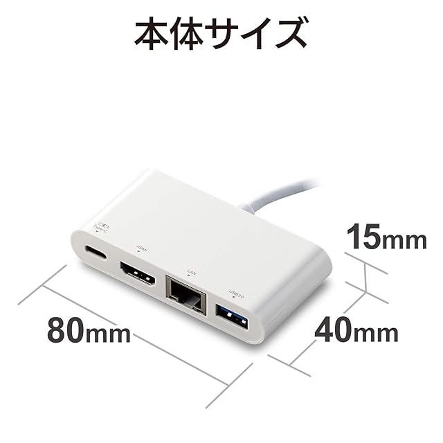 商品名:エレコム Type-C ドッキングステーション Cハブ PD対応 [充電用Type-C×1/USB(3.0)×1/HDMI×1/LANポート] 30cmケーブル ホワイト DST-C09WH