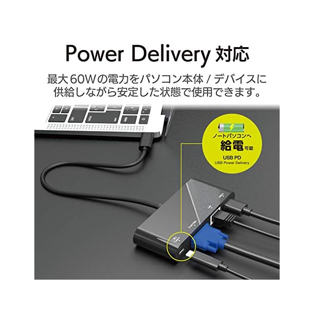 エレコム Type-C ドッキングステーション Cハブ PD対応 [充電用Type-C×1/USB(3.0)×1/D-sub×1/LANポート] 30cmケーブル ブラック DST-C10BK | LIS MART