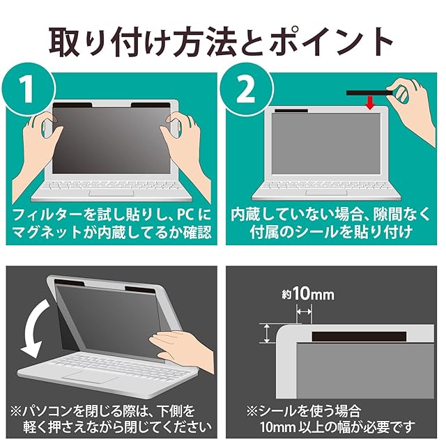そのままで取り付けられない場合は、付属のマグネットシートをパソコンのベゼル部分に貼り付けることで、フィルターを取り付け可能です。