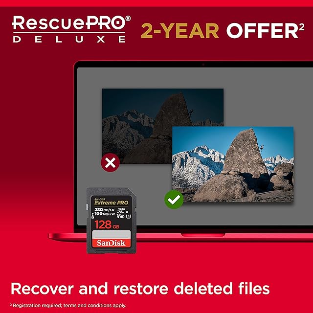 SanDisk 128GB Extreme PRO SDXCカード、SDカード、V60メモリーカード、6K & 4K UHD、最大280MB/秒、衝撃、温度、水、X線防止、RescuePro Deluxeデータ復旧ソフトウェア、UHS-II、クラス10、U3。 | LIS MART