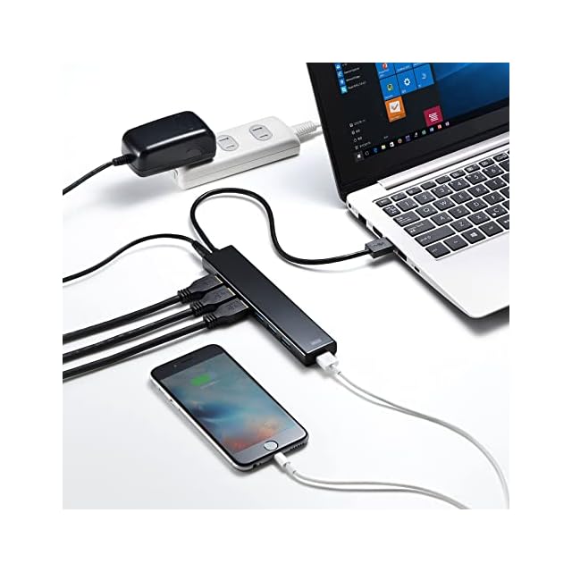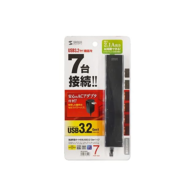 商品名:サンワサプライ USBハブ 7ポート 急速充電ポート付き(2.1A出力×1) USB3.2Gen1 ブラック USB-3H703BKN