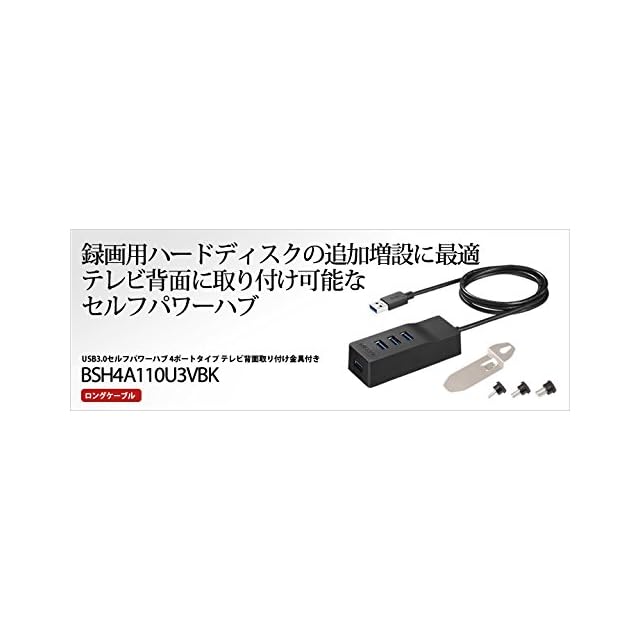 商品名:バッファロー BUFFALO USB3.0 上挿し4ポート セルフパワーハブ TV背面取り付けキット付き BSH4A110U3VBK