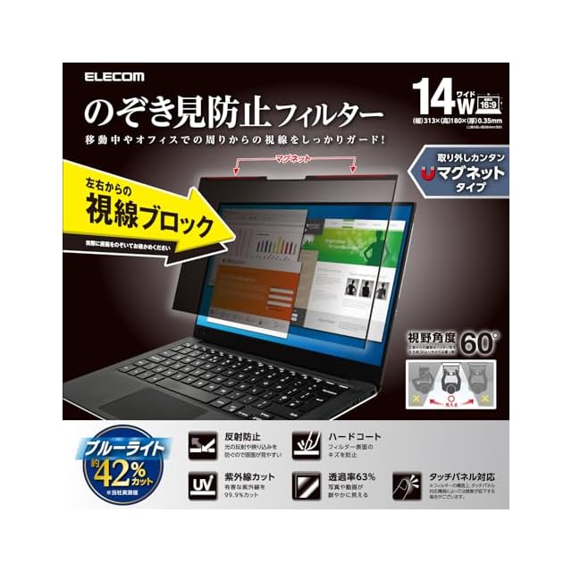 商品名:エレコム 液晶保護フィルター のぞき見防止 マグネットタイプ 抗菌 14Wインチ(16:9) EF-PFMK14W9