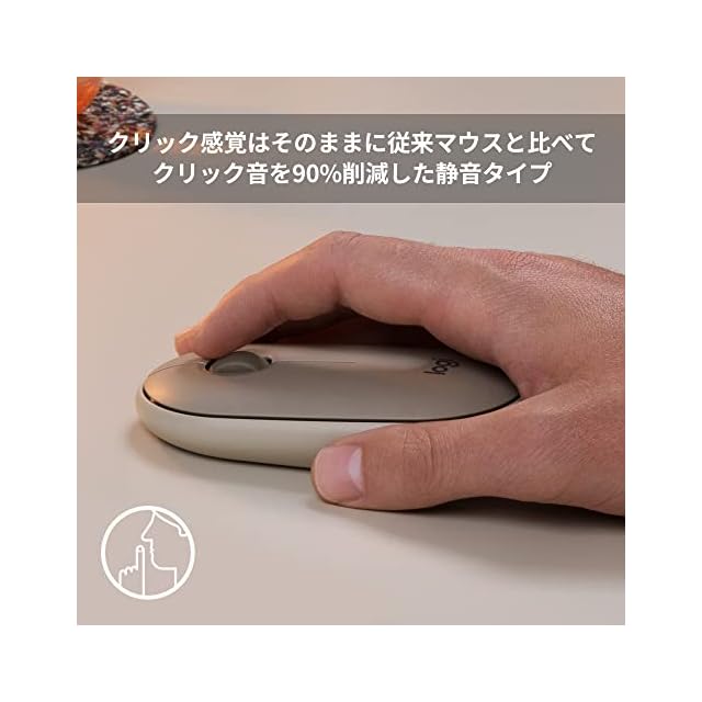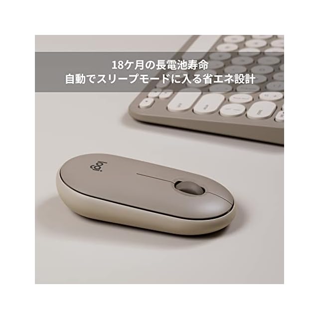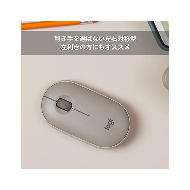 商品名:ロジクール ワイヤレスマウス 無線 マウス Pebble M350GY 薄型 静音 グレージュ USB Bluetooth ワイヤレス 左右対称型 windows mac Chrome Android Surface iPad OS M350 国内正規品