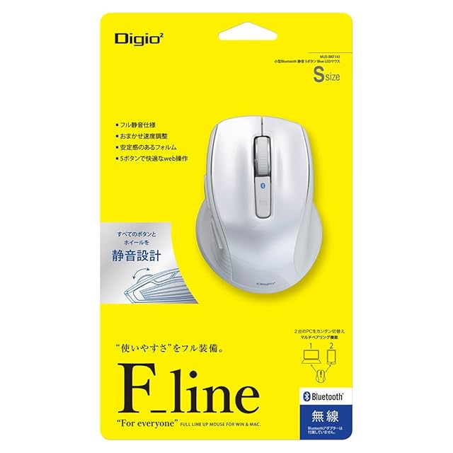 商品名:Digio2 F_line 5ボタンBlue LED マウス 小型 無線 Bluetooth 静音 ホワイト 48402