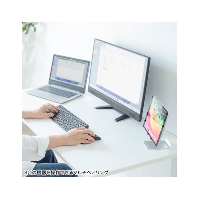 Bluetooth端末は最大2台の端末にペアリングができ、接続先を切り替えることができるマルチペアリングに対応しており、Bluetooth×2台、レシーバー接続1台の3台で切替えて使用できます。※対応しない機種もありますので、ご使用の機器の仕様をご確認ください。