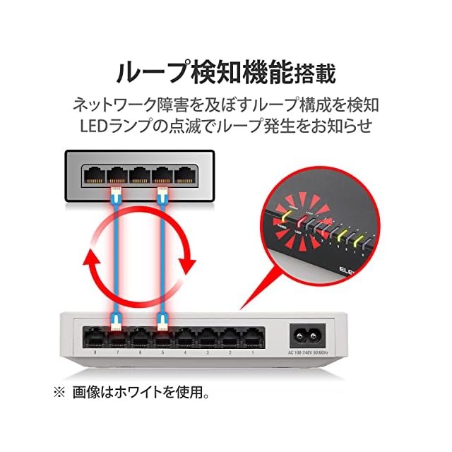 ループ検知機能を搭載し、ネットワーク運用に影響を及ぼすネットワークループ発生をお知らせします。LEDランプの点滅でお知らせし、すみやかなネットワーク障害の解消を促します。