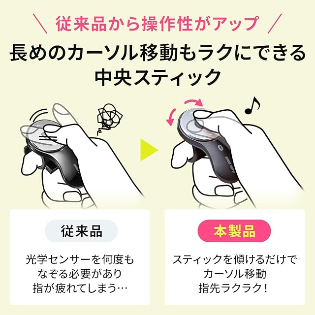指に装着して操作するので、ソファやベッドに寝転がりながら簡単にパソコンを操作することができます。