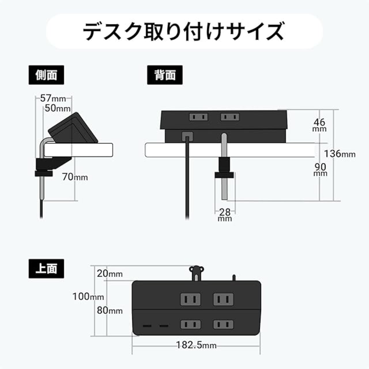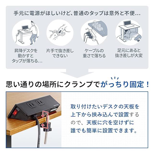 商品名:サンワサプライ(Sanwa Supply) クランプ固定式タップ(ブラック) TAP-B105U-3BKN