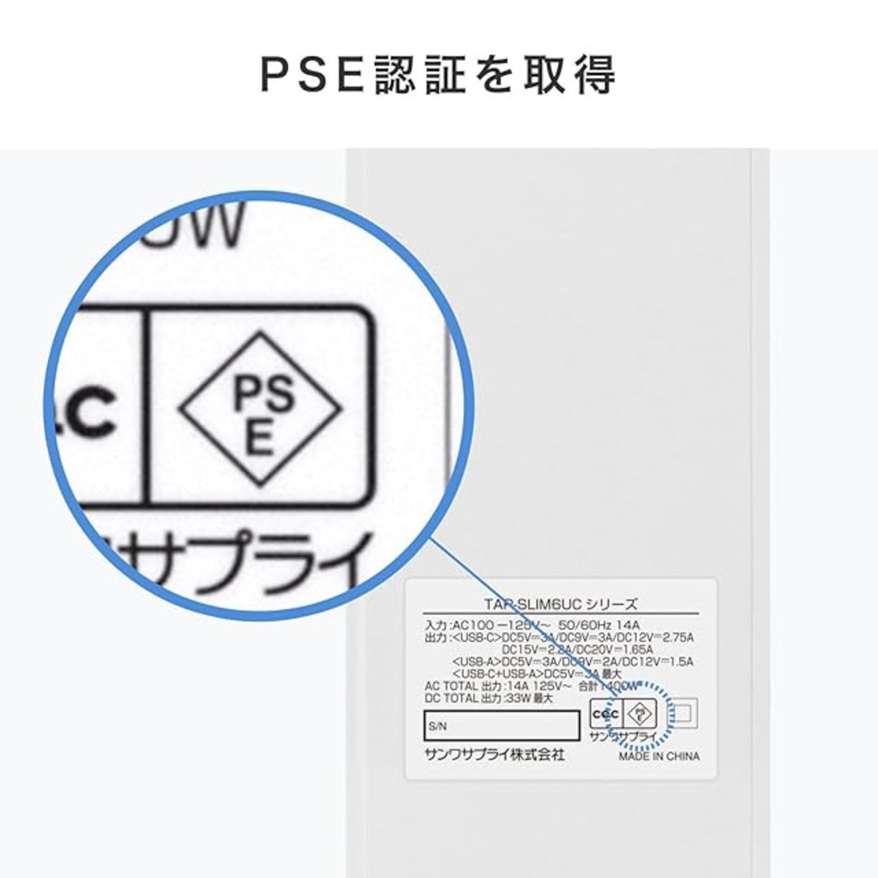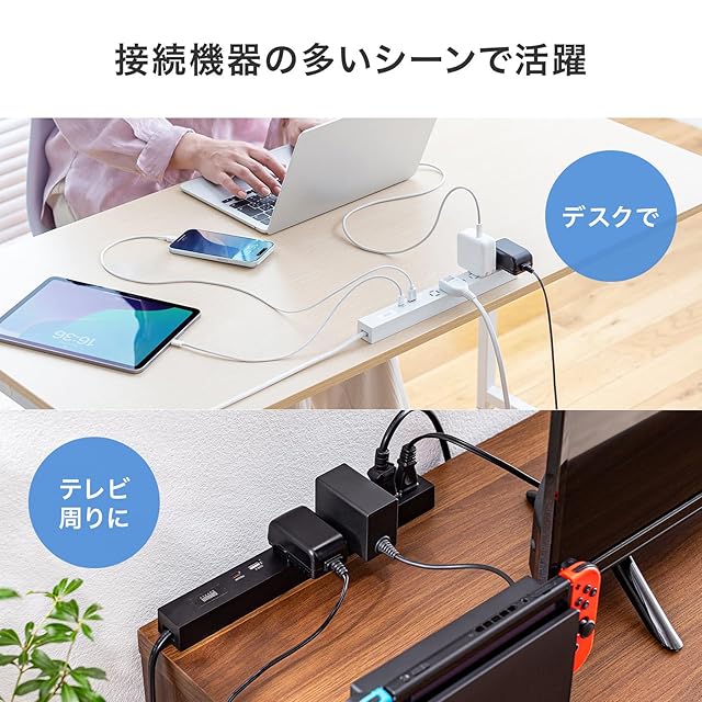 商品名:サンワサプライ スリムタップ(AC6個口・A1+C1・PD33W・3m・ホワイト) TAP-SLIM6UC-3W
