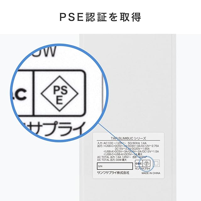 商品名:サンワサプライ スリムタップ(AC6個口・A1+C1・PD33W・1.5m・ホワイト) TAP-SLIM6UC-15W