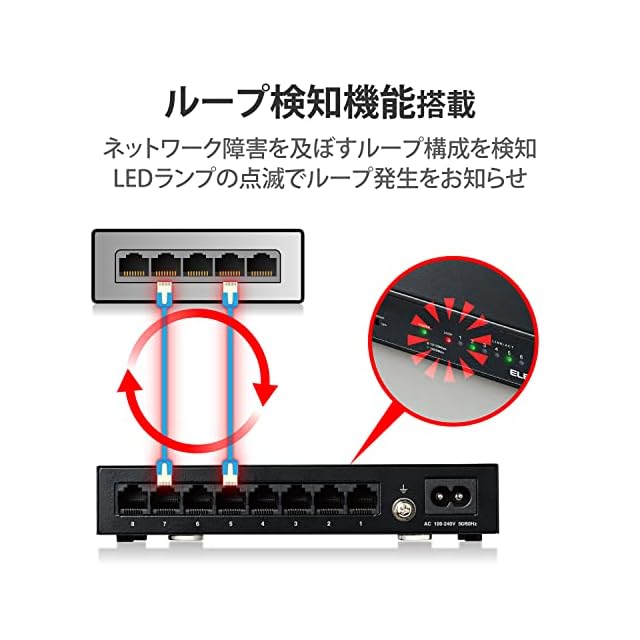 ループ検知機能を搭載し、ネットワーク運用に影響を及ぼすネットワークループ発生をお知らせします。LEDランプの点滅でお知らせし、すみやかなネットワーク障害の解消を促します。