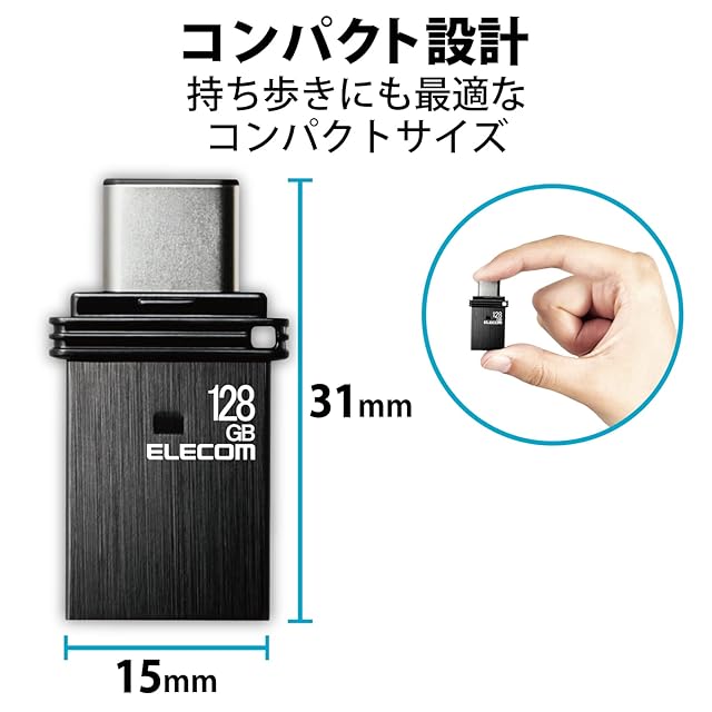 商品名:エレコム USBメモリ 128GB USB3.2(Gen1) Type-C キャップ式 ブラック MF-CAU32128GBK