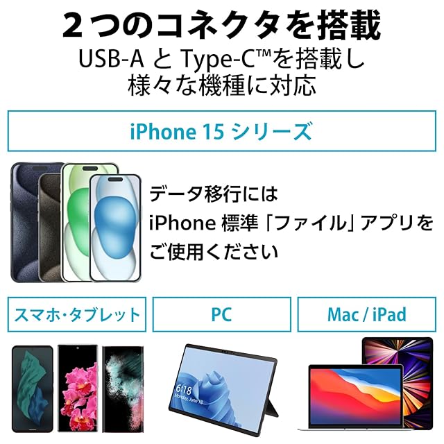 コンパクトな本体にUSB Type-C(TM)コネクターとUSB-Aコネクターを搭載したUSBメモリです。
