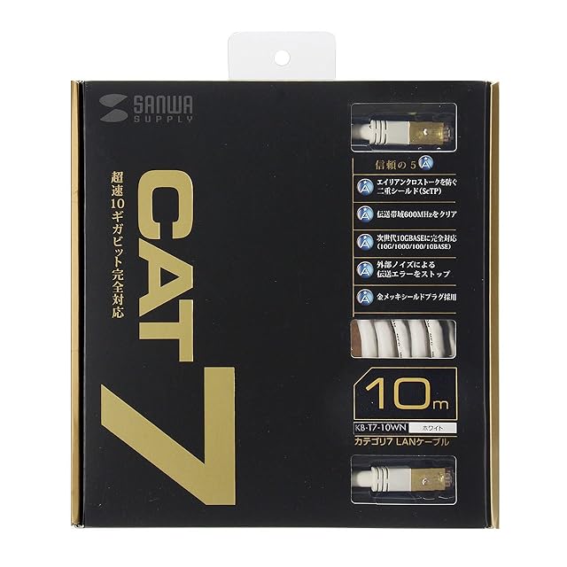 商品名:サンワサプライ CAT7LANケーブル (10m) 10Gbps/600MHz RJ45 ホワイト KB-T7-10WN
