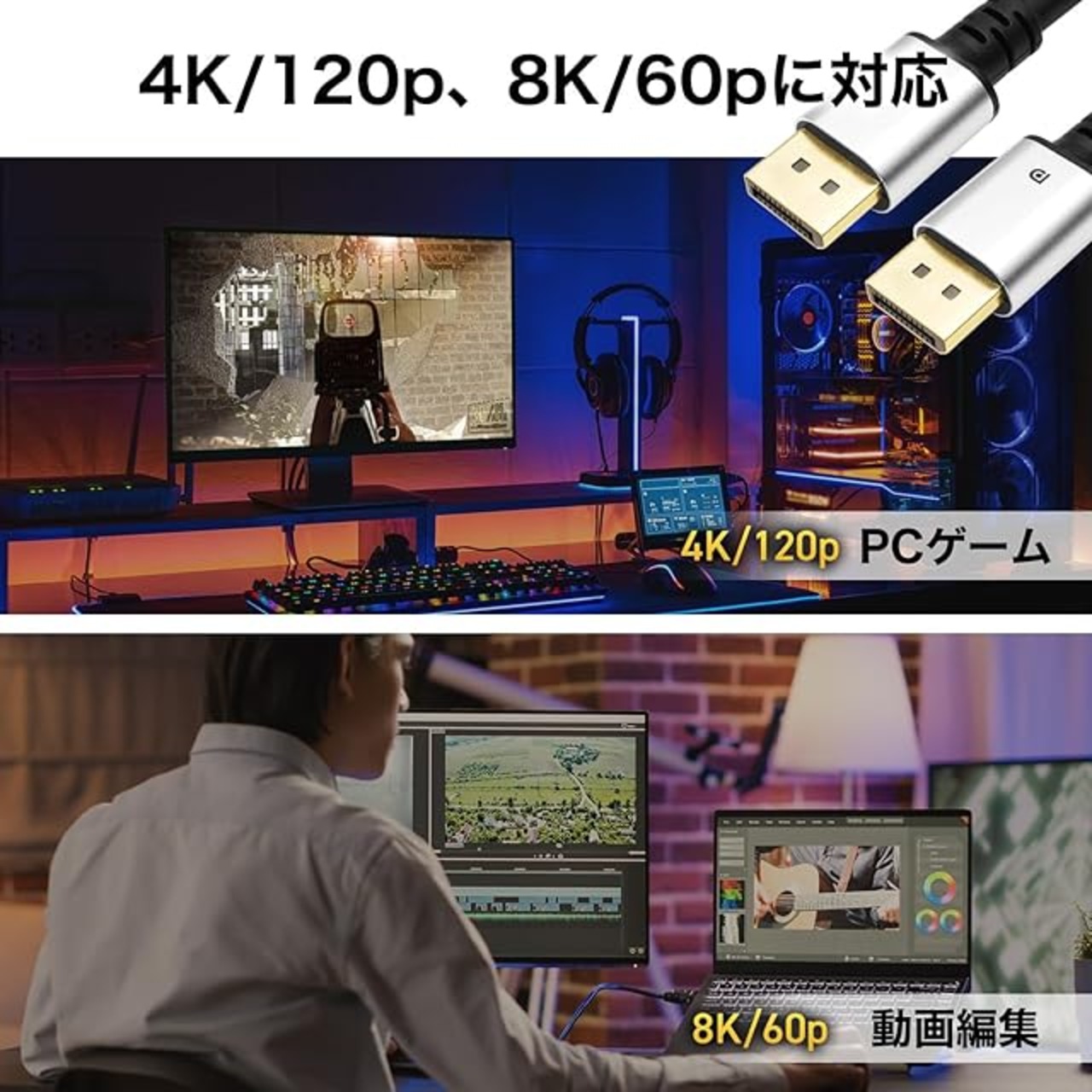 コネクタ形状:DisplayPort(オス)-DisplayPort(オス)
