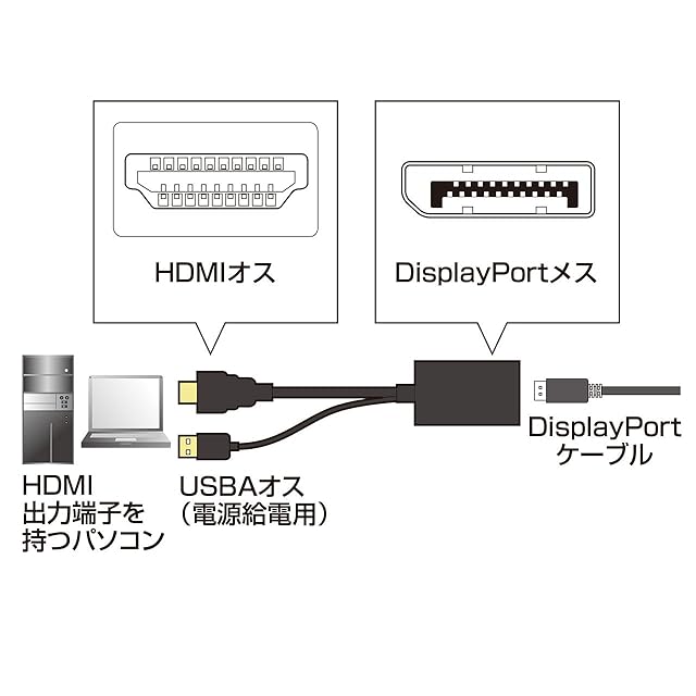 パソコンのHDMI出力をDisplayPortに変換するアダプタ