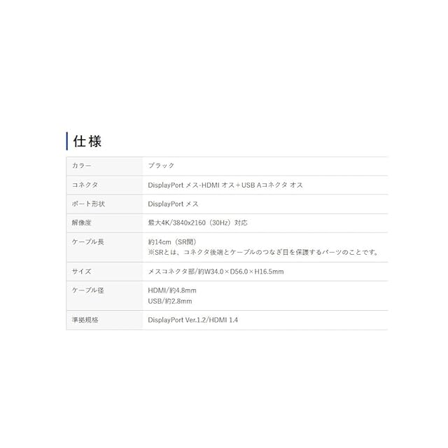 【ケーブル長】:約14cm(SR間)、【ケーブル径】HDMI/約4.8mm、USB/約2.8mm