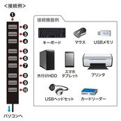 セルフパワーモードでの使用時はパソコンの電源がオフの状態でも電源供給が可能で、USB扇風機などへ給電することができます。<ご購入前にご確認ください>※本製品はセルフパワー/バスパワーの両方に対応しています。バスパワーモードで使用する場合は10ポートの合計値が200mA以内の場合に限り使用可能です。
