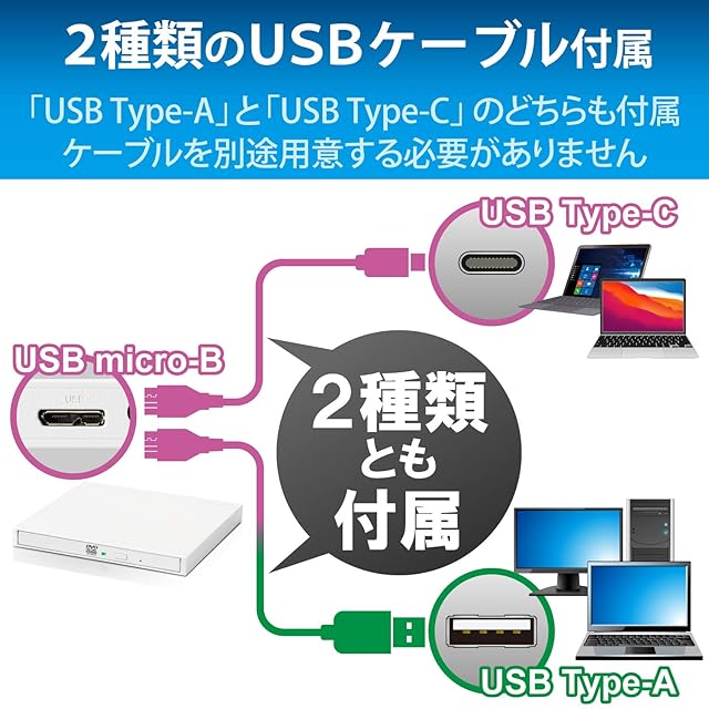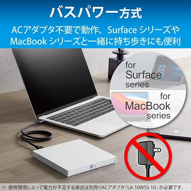 商品名:ロジテック 外付け DVDドライブ USB3.2(Gen1) USB Type Cケーブル付 windows/Mac/Surface対応 サイバーリンク データ書き込みソフト付 M-DISC対応 ホワイト LDR-PML8U3CLWH