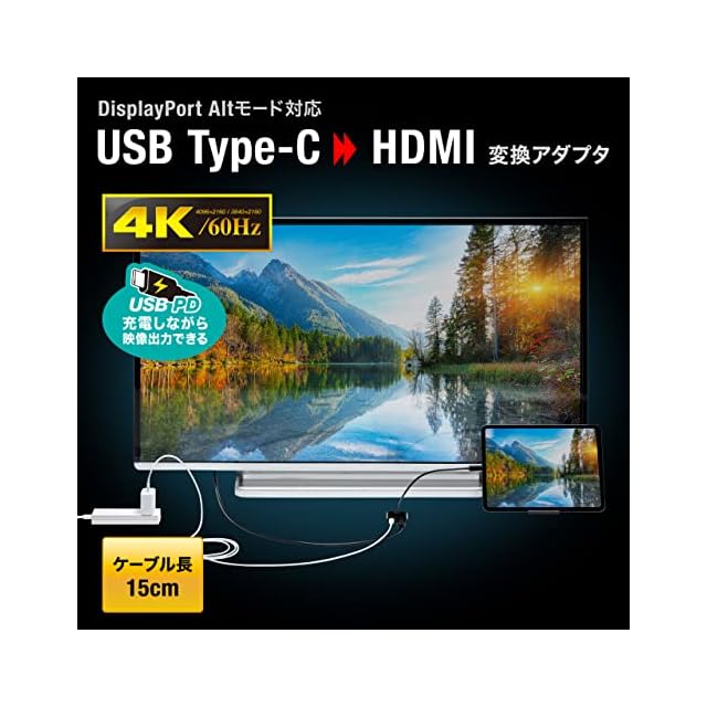 商品名:サンワサプライ(Sanwa Supply) USB Type C-HDMI変換アダプタ(4K/60Hz/PD対応) AD-ALCPHDPD ブラック
