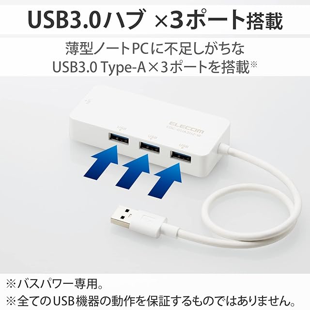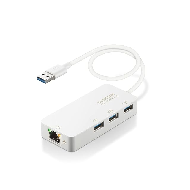 エレコム 有線LANアダプター USB3.0 USB-A USB→RJ45 変換アダプター ギガビット USBハブ (USB-A×3ポート) 【Windows 11/10/8.1、macOS 12/11/10.15対応】 ホワイト EDC-GUA3H2-W | LIS MART