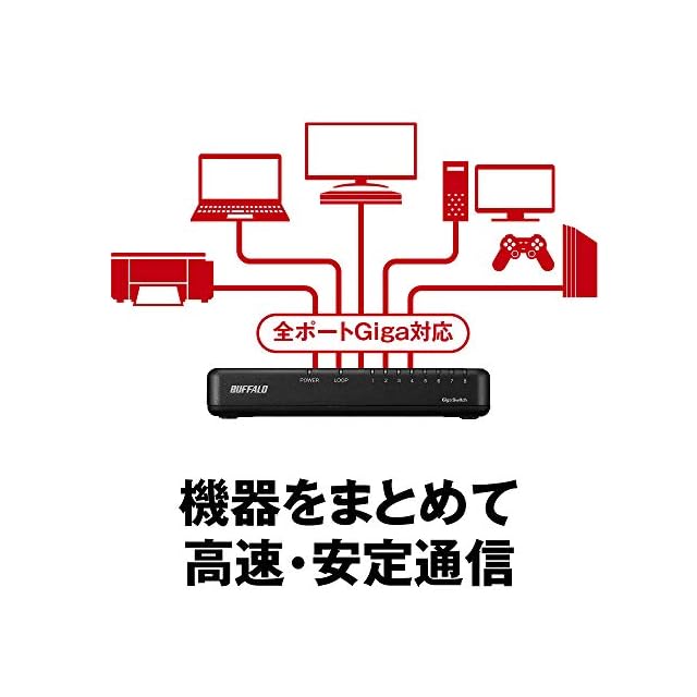 商品名:バッファロー BUFFALO Giga対応 プラスチック筐体 AC電源 8ポート LSW6-GT-8EP/BK ブラック スイッチングハブ マグネット 壁掛け設置対応