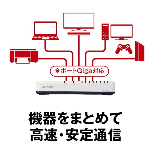 商品名:バッファロー BUFFALO Giga対応 プラスチック筐体 AC電源 8ポート LSW6-GT-8EP/WH ホワイト スイッチングハブ マグネット 壁掛け設置対応
