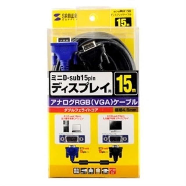 商品名:サンワサプライ ディスプレイケーブル ミニD-sub15pin (VGA-VGA) 15m スリム KC-VMH150