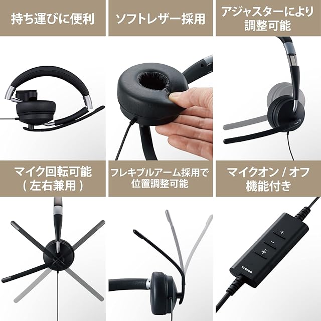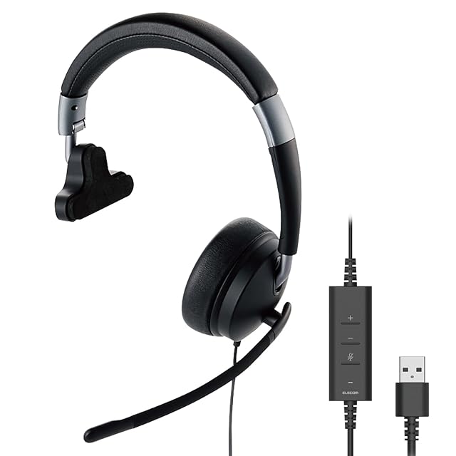 商品名:エレコム ヘッドセット 有線 USB接続 折りたたみ式 マイクミュート機能付き 40mmドライバ 片耳用 [デュアルマイクノイズリダクションで雑音をカット] ブラック HS-HP100UNCBK