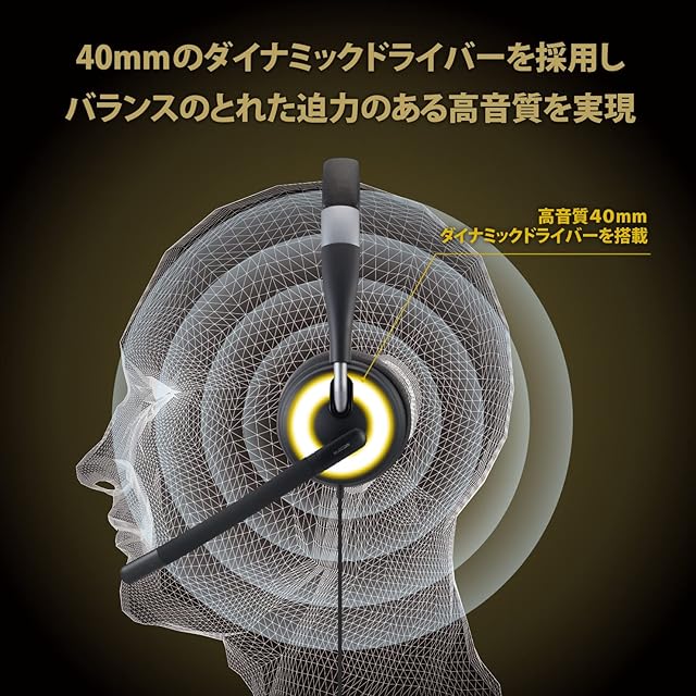 40mmのダイナミックドライバーを採用し、バランスのとれた迫力のある高音質を実現。