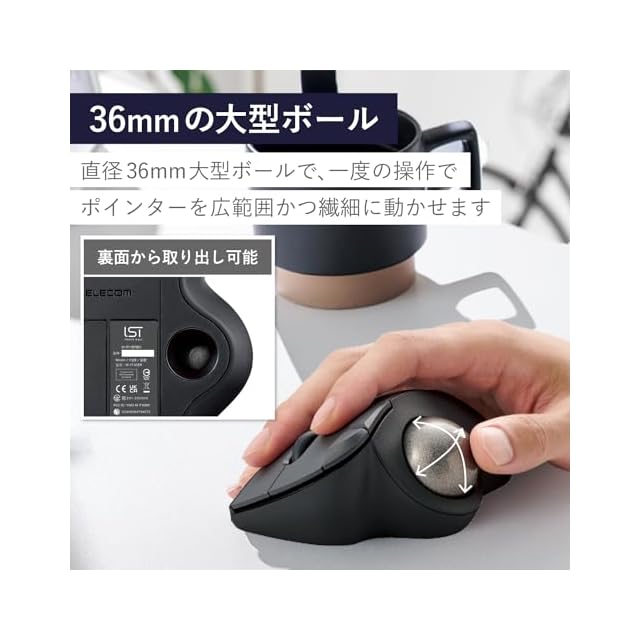 商品名:エレコム ワイヤレス トラックボールマウス Bluetooth IST ベアリング支持 親指操作 36mmボール 5ボタン Windows Mac Chromebook ブラック M-IT11BRBK