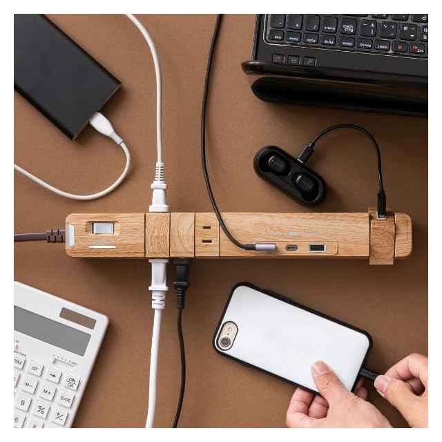 商品名:Fargo 電源タップ TAPKING T5 PD65W 回転式 AC差込口 6個口 USB TYPE-C TYPE-A ポート (ベージュウッド, PD65W)