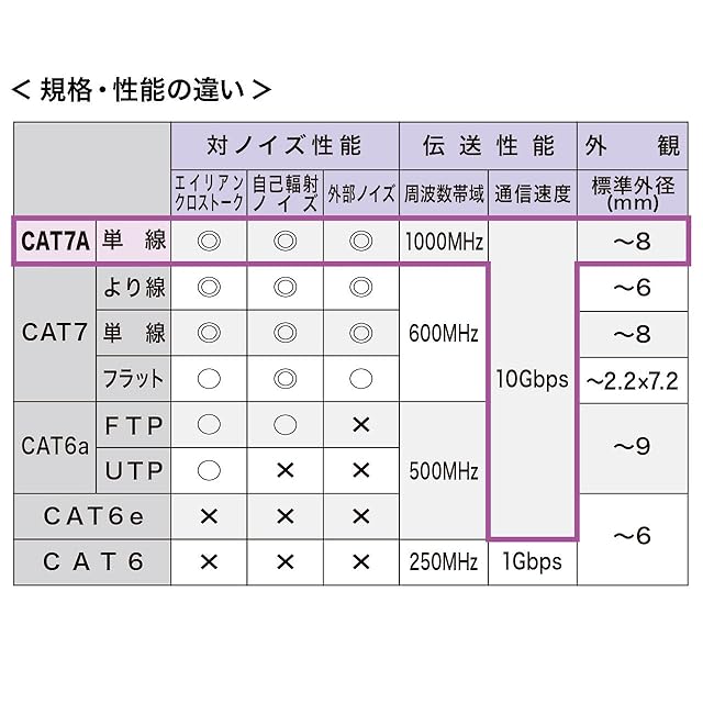 超高速10Gbps、超ワイドレンジ1000MHz伝送帯域を実現したカテゴリ7A LANケーブル