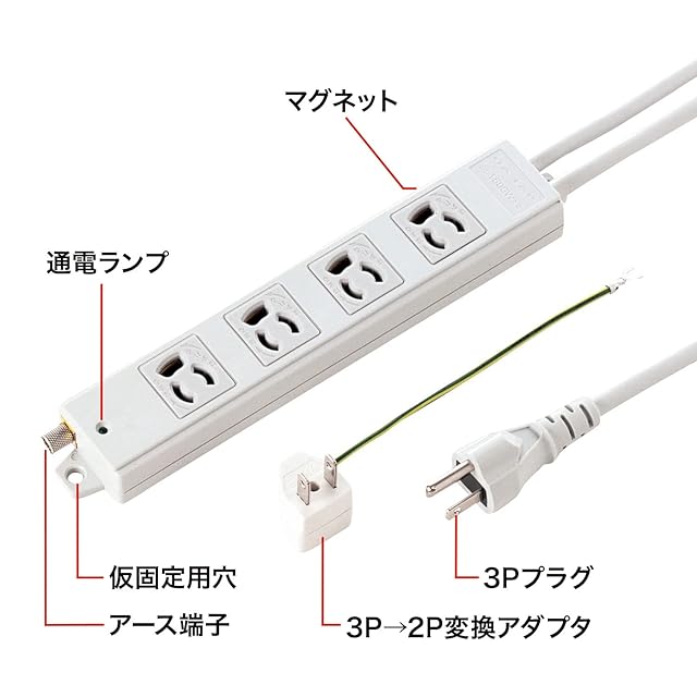 3P抜け止めの4個口仕様電源タップです。