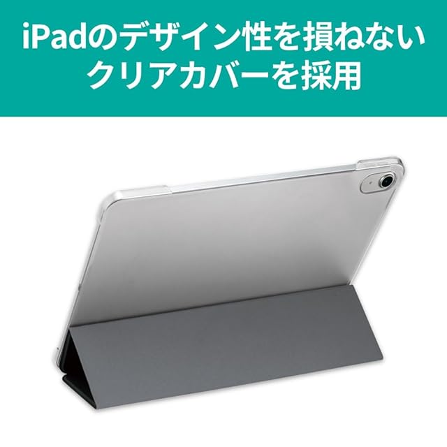 フラップは落ち着いたマット調レザー、背面は透明ハードケースの為iPad本体デザインをいかせます