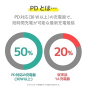 USB Power Deliveryとは、アダプタと接続機器間で情報をやり取りすることで、その機器間における適した電力を選択し、高速充電を実現するUSB規格です。100W(※)という高電力に対応するため、さまざまな機器での利用が広がっています。※本製品の出力は65Wです。