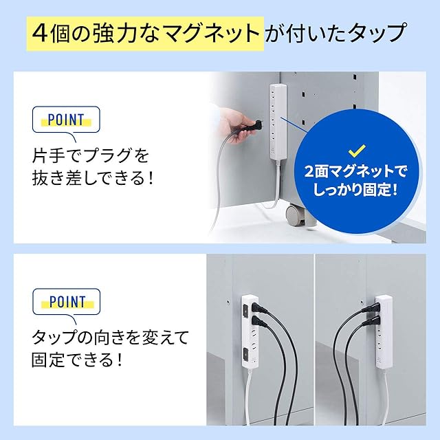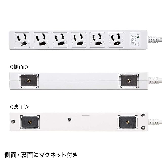 商品名:サンワサプライ 雷ガードタップ 3P・6個口・5m 2面マグネット付き TAP-SPWMG36-5