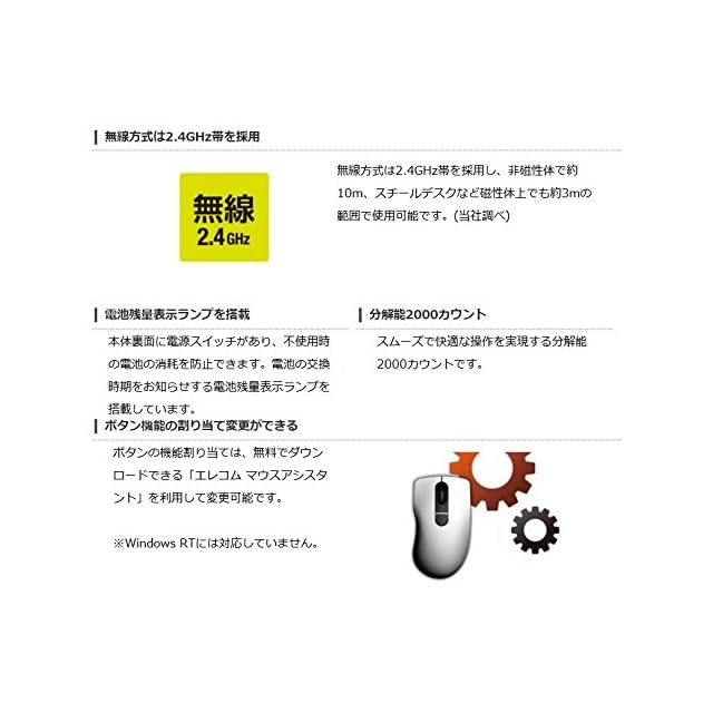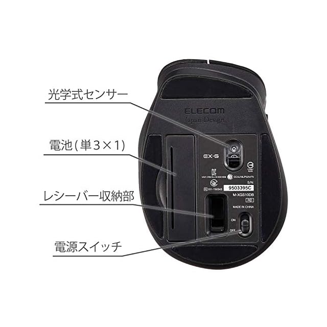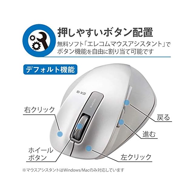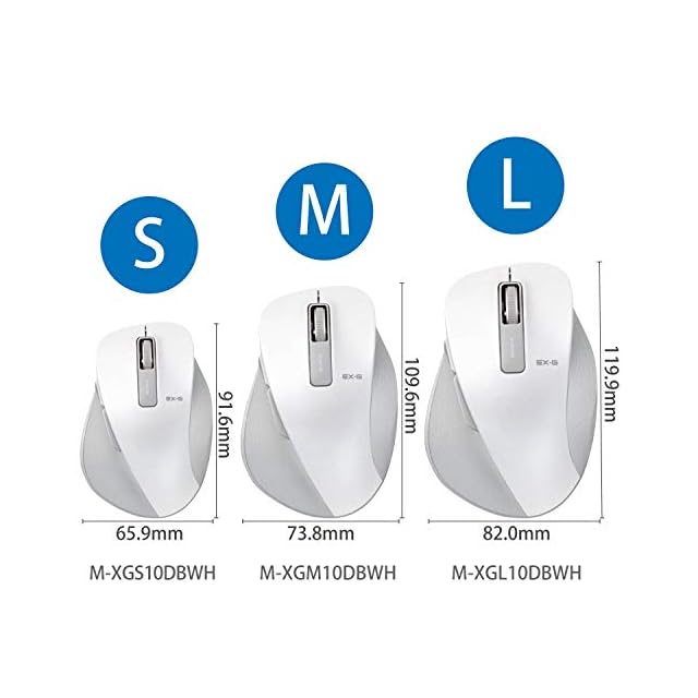 商品名:エレコム マウス ワイヤレス (レシーバー付属) Mサイズ 5ボタン (戻る・進むボタン搭載) BlueLED 握りの極み ホワイト M-XGM10DBWH